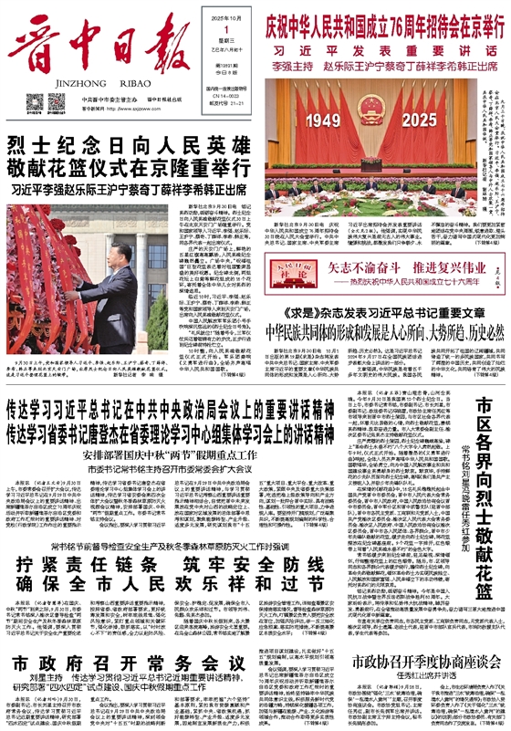 “晉港共建·晉品出海”晉港通山西·晉中產品展示交流會在我市舉辦 丨 全市學習運用“千萬工程”經驗推進鄉村全面振興暨全域土地綜合整治現場會在壽陽縣召開 丨 省安委會第四次全體擴大會議暨秋冬季森林草原防滅火視頻會議召開